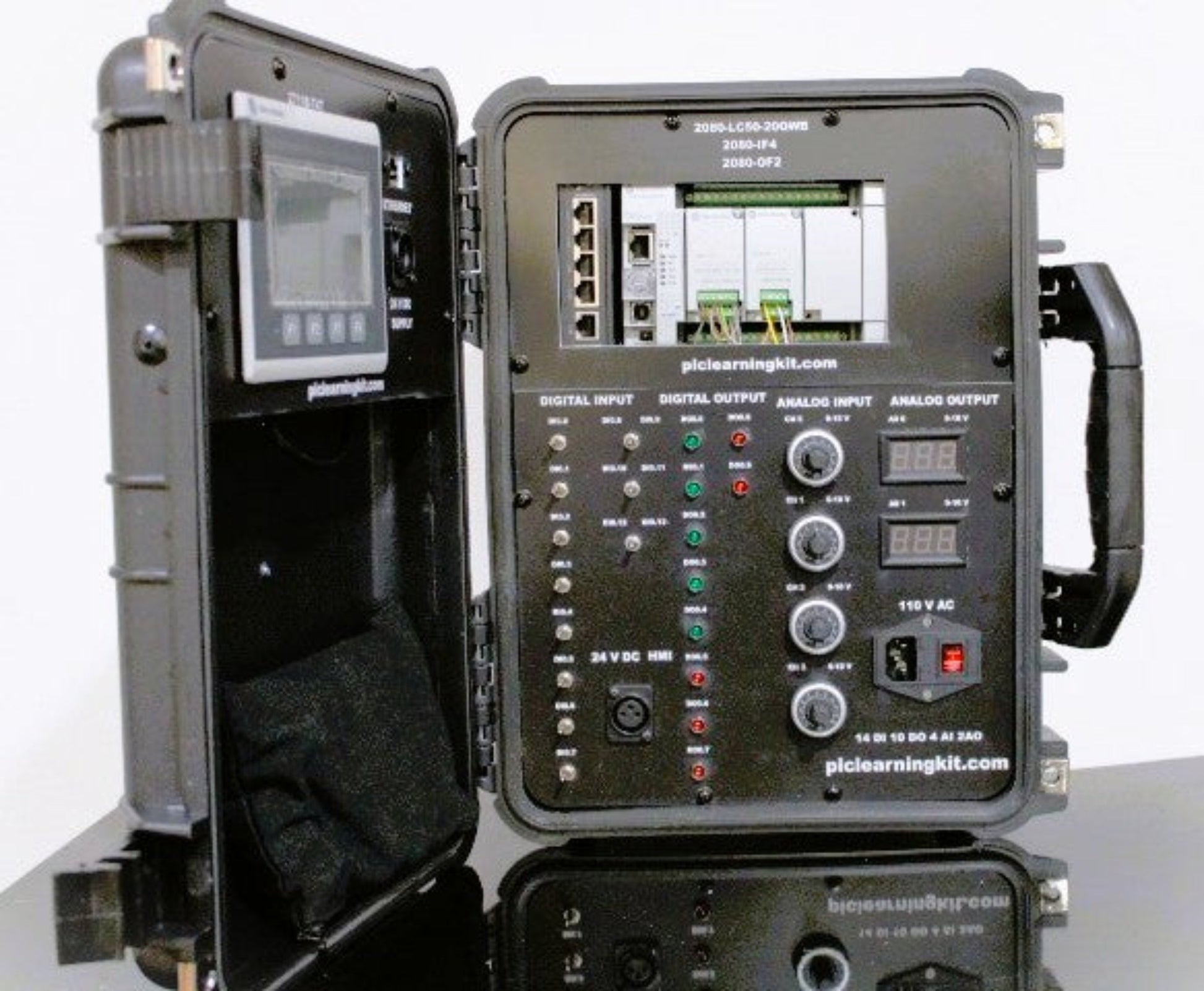 This is the PLC learning kit for Allen Bradley's Micro850 everything you need to start your PLC programming career including a Panelview 800 HMI.These learning kits are Designed for maintenance technicians,Technical school, vocational school and individuals who wish to learn more than the basics to advance plc learning.